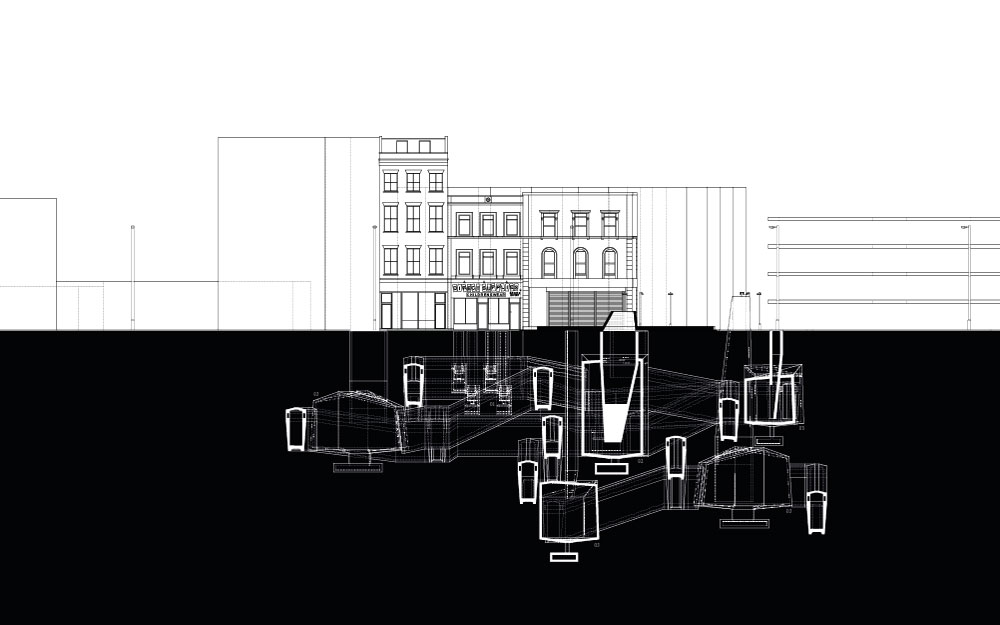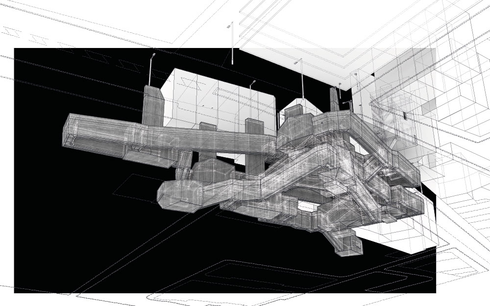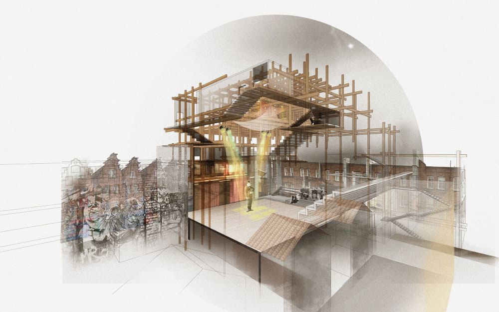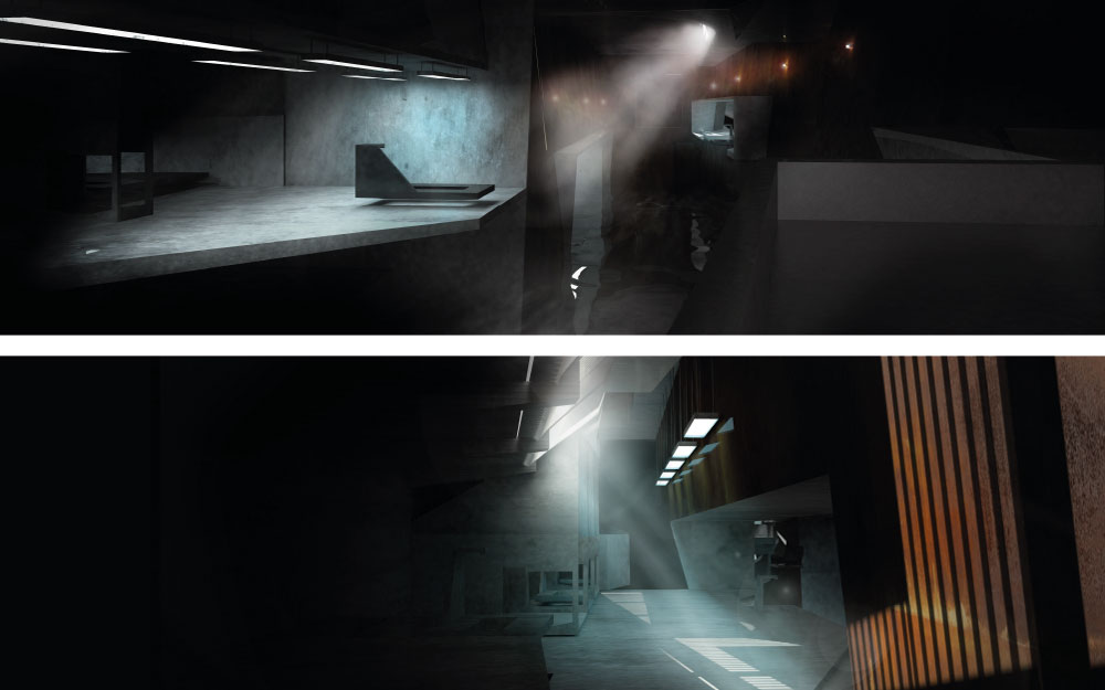 Die Ausgangspunkte dieses Entwurfs bilden die Analyse und Übersetzung filmischer Räume und kinematographischer Darstellungen in haptisch begreifbare Architekturkonzepte.