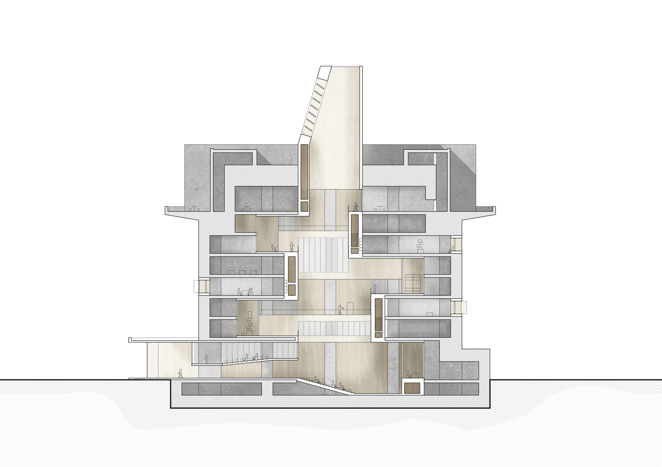 Um den inhaltlichen Schwerpunkt der „Atmosphärischen Möglichkeitsräume“ der letzten Semester weiterzuentwickeln, beschäftigt uns weiterhin die Frage, welche strukturell-räumlichen Elemente und Phänomene ein Gebäude befähigen, verschiedene Programme aufzunehmen – und dennoch seinen eigenständigen räumlichen Ausdruck und Charakter zu behaupten.