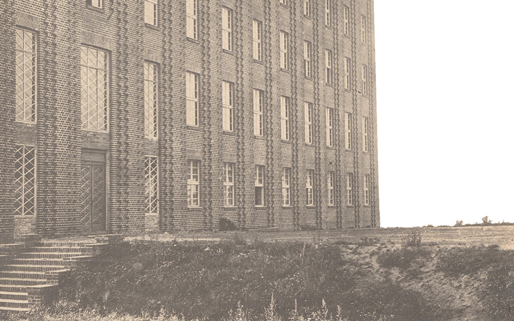 Hans Poelzig, Verwaltungsgebäude Firma Gebr. Mayer, Hannover-Vinnhorst, Teilansicht, Architekturmuseum TU Berlin, Inv. Nr. 2833