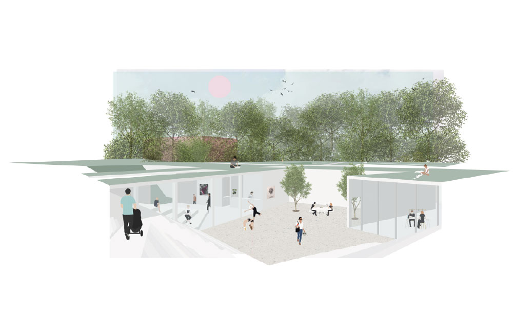 Das Haus soll - ausgehend von klassischen Theaterräumen, die auch immer soziale und kuturelle Orte waren - sowohl als Unterkunft wie auch als gesellschaftliche Plattform für studierende und studierte Gasttänzer/innen dienen und den Wunsch nach der gemeinsamen Entwicklung von Tänzen thematisieren. Es soll über einen Werkstatt- und Atelierbereich, als integrale Bestandteile des Hauses, verfügen. Neben den Tanzflächen soll ein Werkhof entstehen, der die kollektive Zusammenarbeit fördert. Die Ateliers sollen als öffentliche Gemeinschaftsräume installiert werden, die als Plattform für einen kreativen Austausch dienen und die Teilhabe an den Entstehungungsprozessen des modernen Tanzes ermöglichen.
