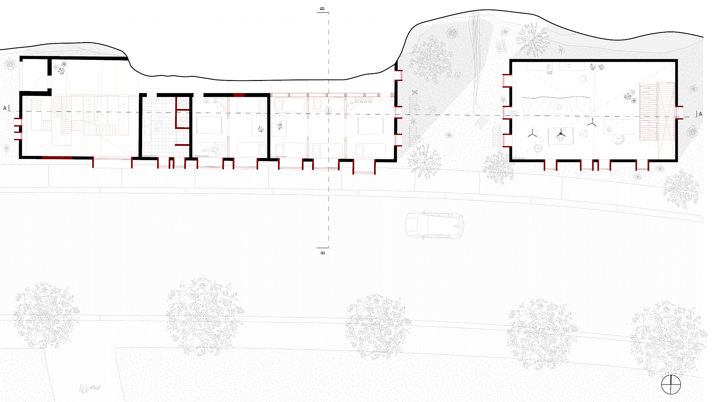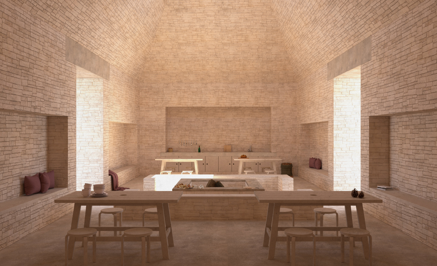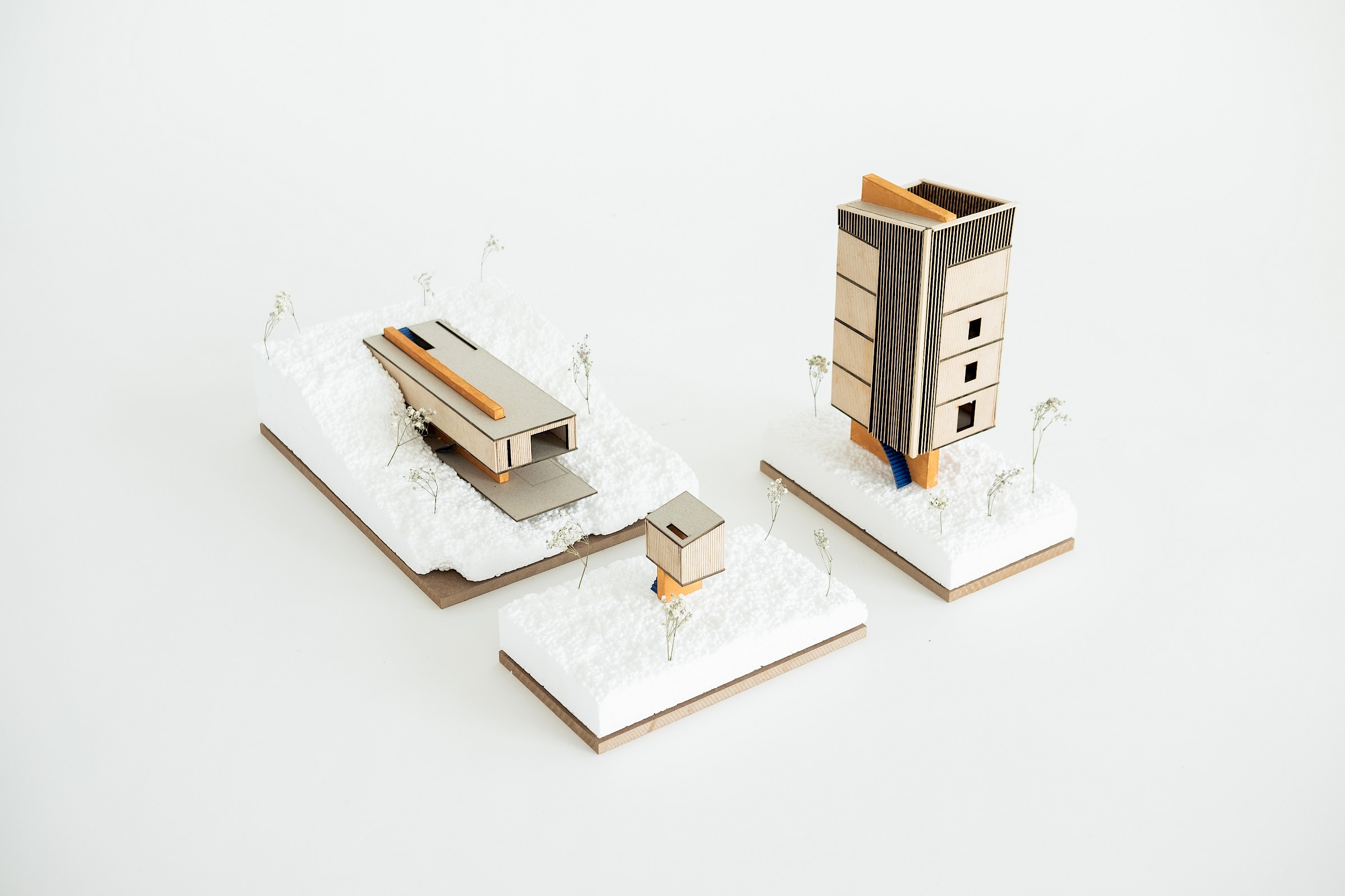 Das Raumprogramm integriert fünf verschiedene Nutzungen. Diese können sowohl als ein zusammenhängendes Gebäude, als Ensemble oder auch als einzelne Solitäre konzipiert werden. Dazu gehören Schlafmöglichkeiten, eine Urhütte als Kochstelle, ein Werkraum für kreative Betätigung, in dem Interessierte die Naturerfahrungen beim Wandern künstlerisch einfangen können, ein Café, sowie eine selbst zu formulierende Nutzung, die das individuelle Entwurfskonzept unterstreicht. Dies könnte beispielsweise ein Aussichtspunkt, eine Waldbühne, ein Andachtsraum oder eine Badestelle sein.