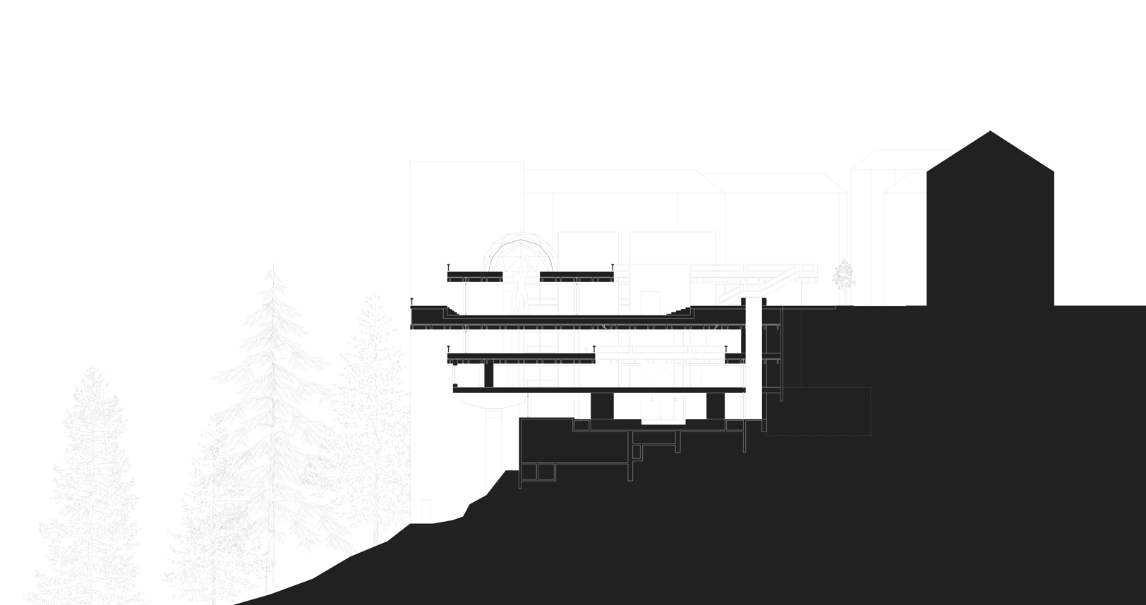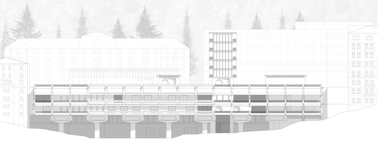 Als Nutzungsszenario für das leerstehende Gebäude ist ein Sanatorium der Gegenwart. Es soll ein Ort für gestresste Großstädter entstehen. Strukturell liegt der Fokus darauf, den Bestand gezielt zu modifizieren und um eine neue räumliche Schicht zu ergänzen, so dass er den veränderten programmatischen Anforderungen entspricht und im Kontext der aktuellen Revitalisierungsbestrebungen in Bad Gastein wieder ein räumlicher und atmosphärischer Attraktor wird.