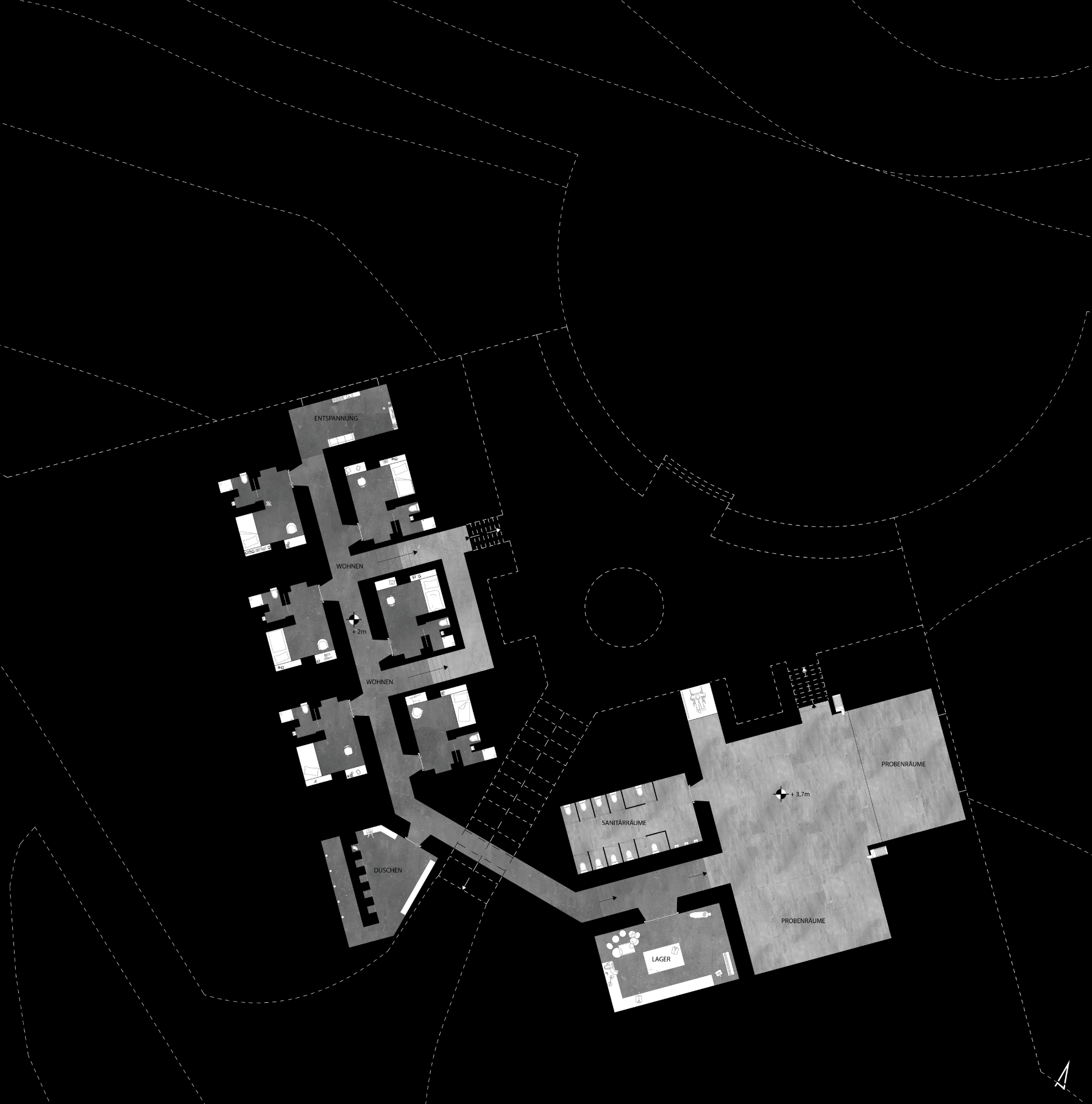 Das Raumprogramm integriert vier verschiedene Nutzungen. Diese können sowohl als ein zusammenhängendes Gebäude, als Ensemble oder auch als einzelne Solitäre konzipiert werden. Dazu gehören ein Theatercafé als Treffpunkt der Stadtgesellschaft, tanzpädagogische Räume, eine Freilichtbühne sowie Schlafmöglichkeiten für Choreograf:innen und Tänzer:innen in Residence. Das neue Tanztheater soll dabei weit mehr als ein Zentrum für Tanzkunst werden – es soll als ein kooperatives Experimentierfeld fungieren, in dem verschiedene gesellschaftliche Gruppen zusammenkommen und das Tanz als sprachbarrierefreien Ausdruck verbindet.