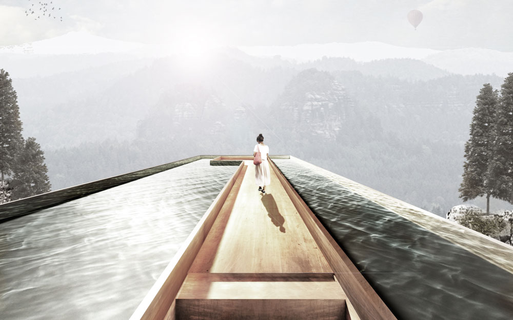 Die Landschaft im Nationalpark Sächsische Schweiz bietet ein ideales Rückzugsgebiet für die zivilisationsmüden Rekonvaleszenten. Hier gibt allein das Naturschauspiel mit dem Wechsel der Jahreszeiten und der Sonnenauf- und -untergänge den Takt an und erinnert an vergessene chronobiologische Eigenrythmen. Neben Unterkünften und Gemeinschaftseinrichtungen für die Eremiten auf Zeit sind Rekreations- und Kontemplationsräume zu erfinden und zu entwerfen, die das besondere Erlebnis des Ortes einbeziehen und inszenieren.