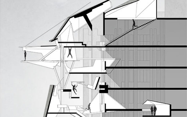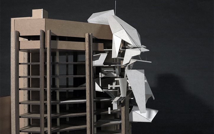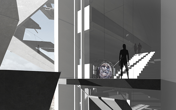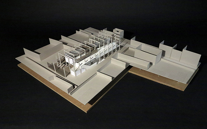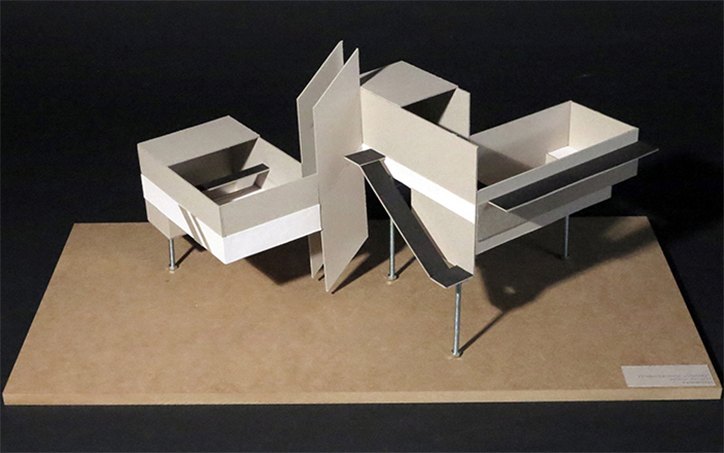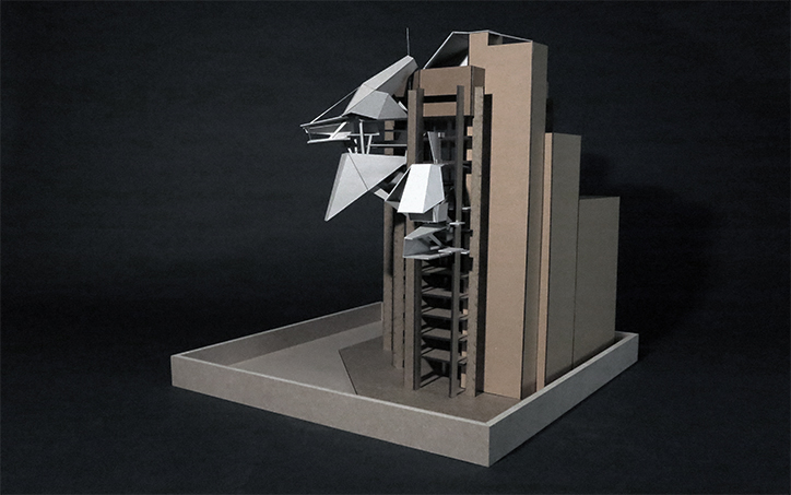 Die Ausgangspunkte dieses Entwurfs bilden die Analyse und Übersetzung filmischer Räume und kinematographischer Darstellungen in haptisch begreifbare Architekturkonzepte.