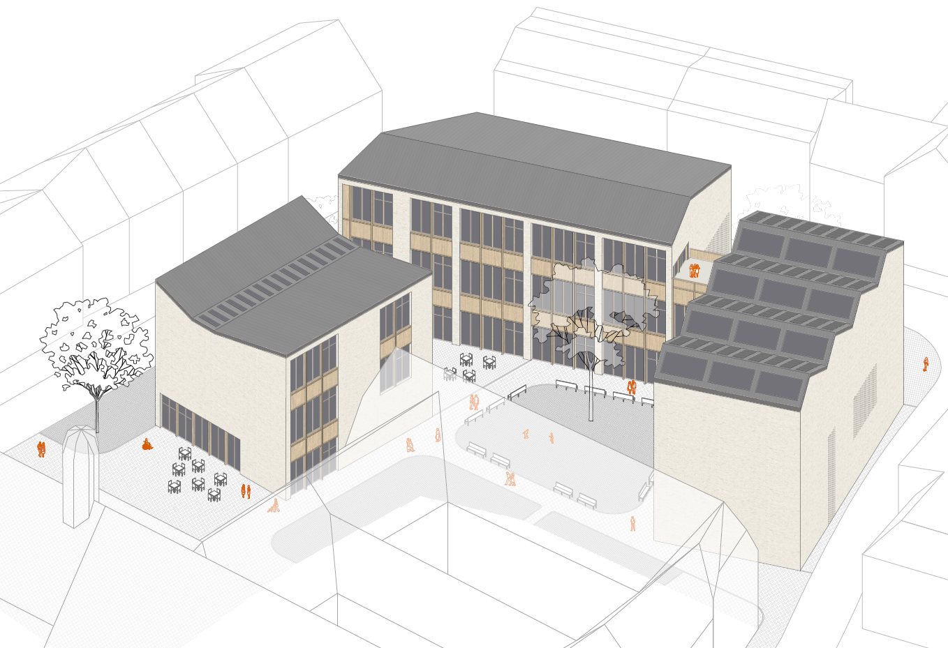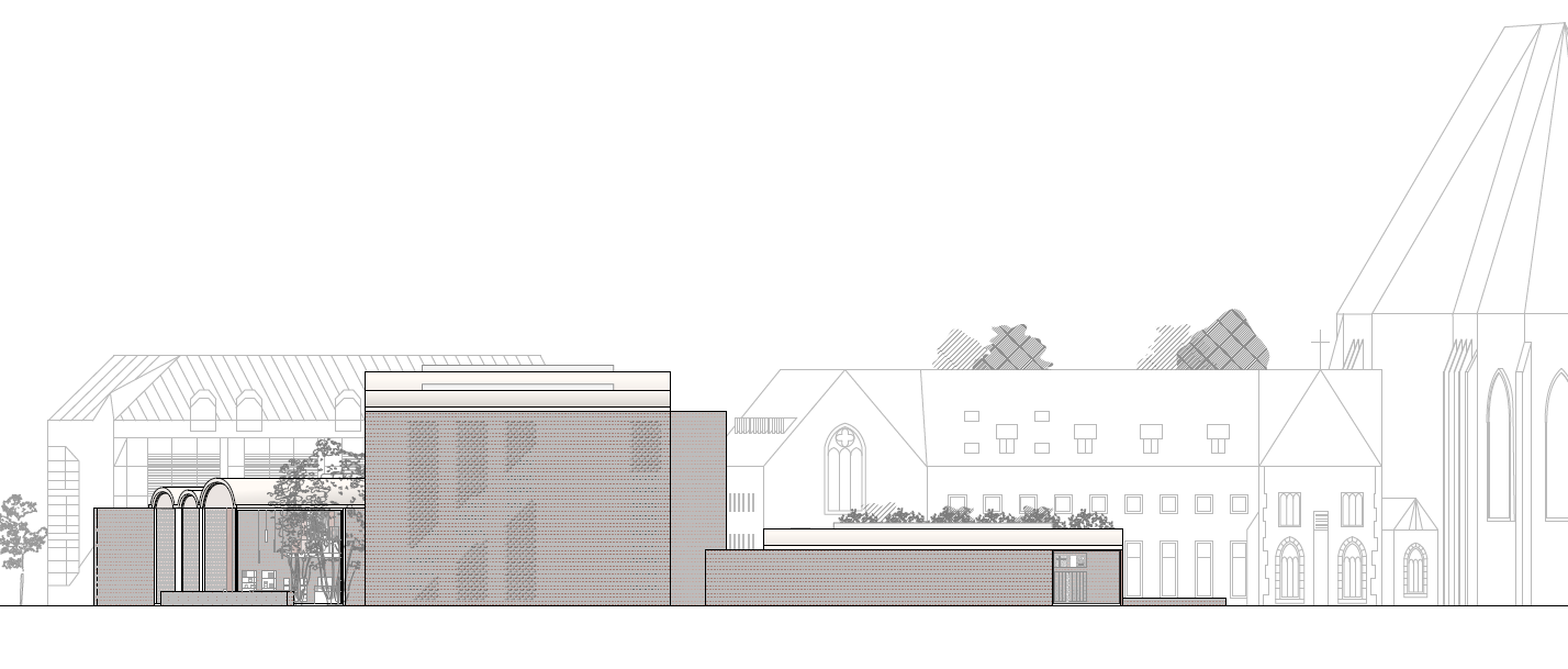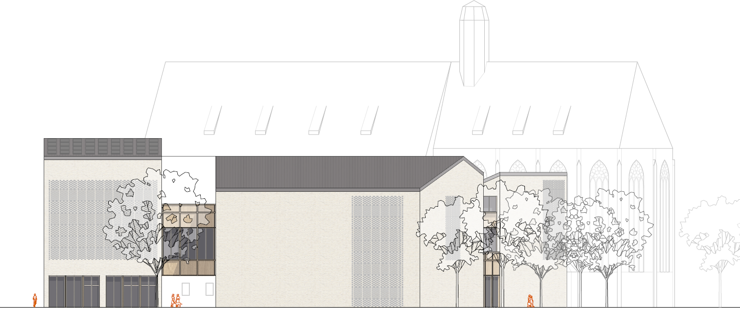 Der Bachelorentwurf geht also der Idee nach, die Schönen Künste wieder zusammenzuführen und für die Öffentlichkeit präsenter und zugänglicher zu gestalten. Die Aufgabe besteht darin, beide Institutionen an einem dritten Ort räumlich zu verknüpfen, zu erweitern und deren Außenwirkung zu stärken. Der Fokus liegt dabei darauf, spezifische Räume für die Schönen Künste zu entwickeln, die zum Schaffen, Gestalten und Formen anregen sollen. Die Verortung erfolgt im innerstädtischen Kontext Braunschweigs, im Umfeld der Evangelischen Akademie, der Brüdernkirche und des Alten Zeughofs. Um inhaltliche Synergien zu bilden, ist die räumliche Einbindung in das ehemalige Franziskaner Kloster optional möglich. Ziel ist es dabei nicht nur, die bestehenden Bildungsstandorte zu erweitern, sondern auch die differenzierten inhaltlichen Themen einzelner Funktionsbereiche in unterschiedliche räumliche Atmosphären zu überführen. Als Schnittstelle zur Stadt soll der zu konzipierende Neubau die Sichtbarkeit auf universitäre Arbeiten schärfen.