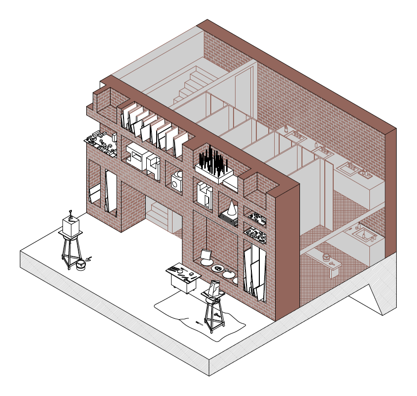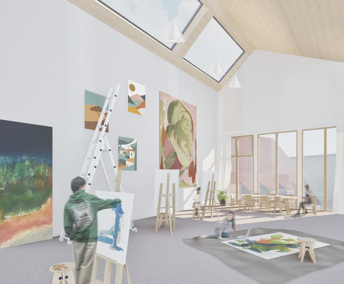 Der angestrebte Austausch mit der Braunschweiger Stadtgesellschaft soll durch einen stetigen Dialog über Semesterarbeiten und Projekte, zu Themen in der Kunstszene sowie über die aktuelle Lehre im Atelier der Schönen Künste erreicht und gefestigt werden. Ergänzend zu den Ateliers mit unterschiedlichen Dimensionen, gibt es ein Forum für den Austausch, einzelne Ausstellungsbereiche sowie eine Materialbibliothek, welche die Sinne fördern soll. Die Beschaffenheit, Verarbeitung und Entstehung werden erklärt und mit Proben veranschaulicht. Des Weiteren gibt es für die Öffentlichkeit Ausstellungsräume, welche je nach Nutzung flexibel adaptierbar sind. Die Herausforderung besteht darin, atmosphärisch dichte und differente Räume zu entwerfen. Dies betrifft sowohl flexibel nutzbare Bereiche für Ausstellung und Versammlung als auch solche mit speziellen Anforderungen, beispielsweise um handwerkliche Tätigkeiten ausüben zu können.