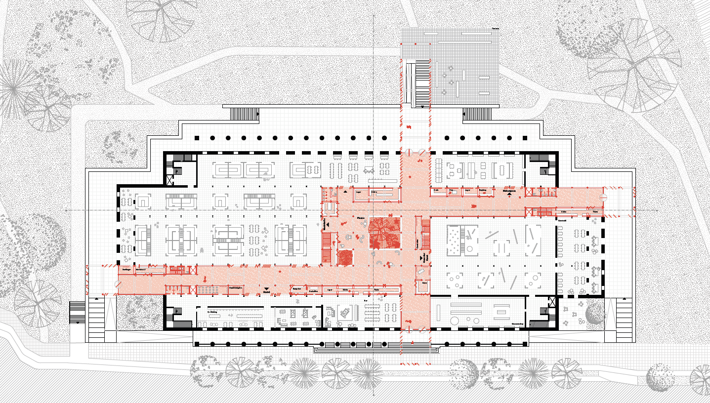 In Anbetracht dieser Ausgangslage befasst sich der ME mit bestehenden Museumsbauten, die mittels einer programmatischen und räumlichen Uminterpretation zukunftsfähig gestaltet werden sollen. Dabei liegt der Fokus auf dem Hinzufügen einer neuen räumlichen Ebene. Ziel ist es, einen Bestandsbau durch eine bauliche Ergänzung für mehrere Nutzungsszenarien auszulegen und so eine räumliche Mehrdeutigkeit zu generieren.