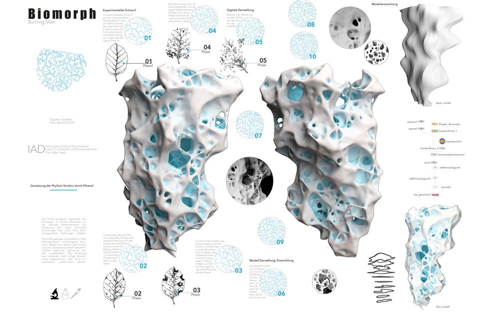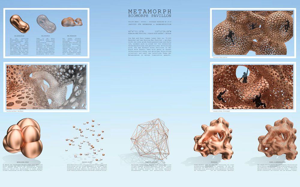 Über das virtuelle Modellieren hinaus werden digitale Fertigungsmethoden behandelt und auf Vorteile für den Gebrauch im architektonischen Entwurfsprozess untersucht. Durch das Experimentieren mit digitalen Entwurfsstrategien, Konzepten und Materialien soll im Seminar „Digitales Gestalten“ eine kleine Raumstruktur in Modellen und Zeichungen entwickelt werden.