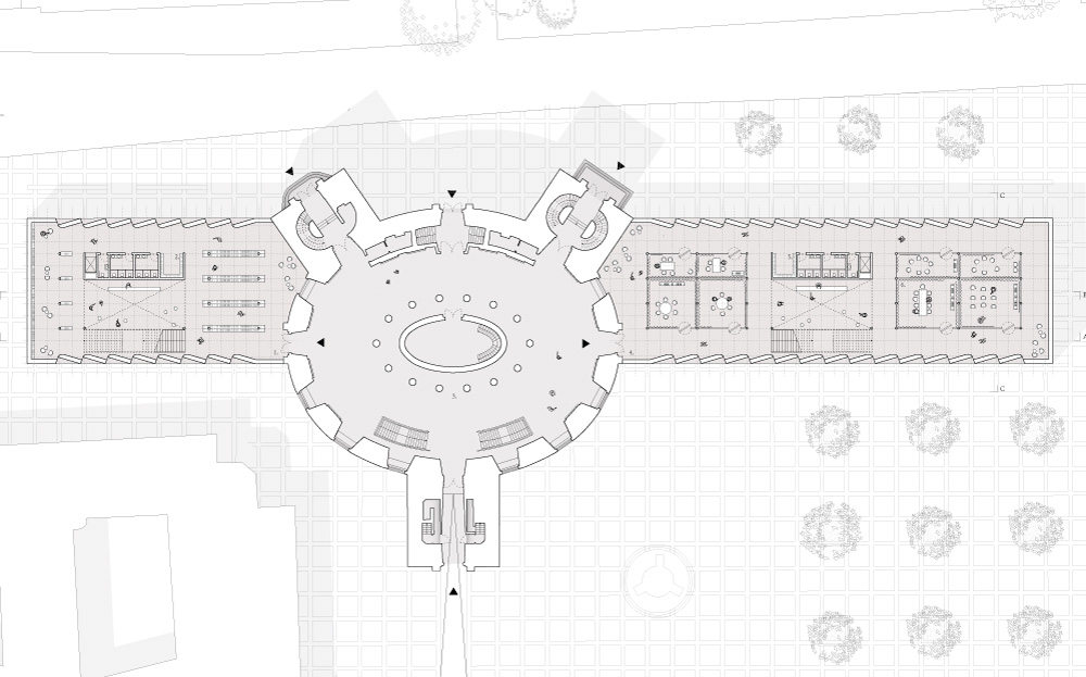 Der Bachelorentwurf zum Haus der Demokratie kann als Beitrag zu diesem Mitbestimmungsprozess verstanden werden. Das Haus der Demokratie kann als Ort gedacht werden, an dem die demokratiegeschichtliche Bedeutung der Paulskirche dokumentiert wird, an dem zur Demokratie geforscht, recherchiert und referiert wird, vor allem als Raum, in dem politische Diskurse gepflegt und Demokratiekonzepte ausprobiert werden. Typologische Anknüpfungspunkte für Debattier- und Experimentierräume unterschiedlicher Größe und Atmosphäre bieten Literarische Salons und Debattierclubs, Stammtische und Talkshow-Szenarien, Hinterzimmer und Parlamente. Mögliche Referenzen sind Akademien für politische Bildung. Letztlich aber obliegt die Programmatik des Hauses dem eigenen Verständnis von Demokratie und Debattenkultur, sie soll mit eigenständigen Ideen bereichert werden.